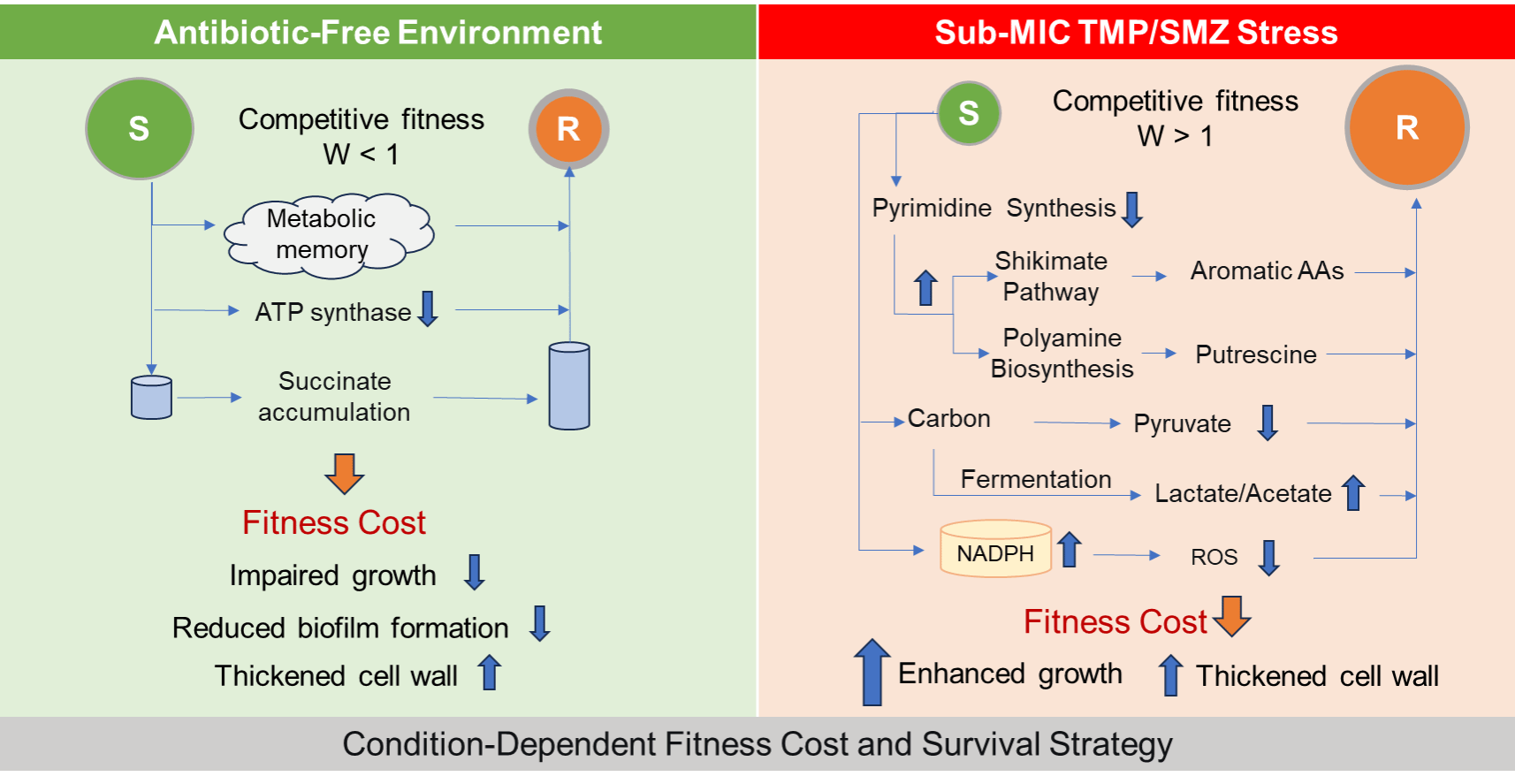 随着抗生素在医疗、养殖和农业中的广泛使用,细菌耐药性问题日益严峻。TMP/SMZ作为一线抗菌药物,其耐药菌株已在废水、土壤等环境中广泛检出,成为耐药基因传播的重要储库。然而,耐药菌在无抗生素环境中是否因"适应性代价"而被敏感菌竞争淘汰,以及在低浓度抗生素压力下如何生存,一直是科学界关注的焦点。