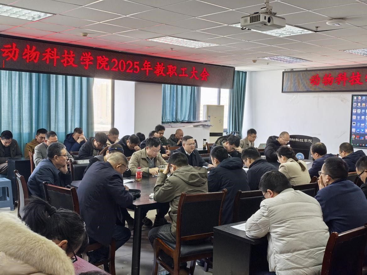 党委书记何桦指出,2025年作为“十四五”收官与“十五五”布局的承启之年,学院将以奋进之姿把握历史机遇,在攻坚克难中开创新局,着力构建“四个维度”发展格局:一是铸师魂之本,以教育家精神涵养育人初心,通过课堂教学、管理服务多维渗透价值引领、知识传授与品格塑造。二是聚党建之能,深度推进党建和业务的融合,思考融合的路径、找准融合的重点,形成独属动科特色的党建品牌,进一步提高学科影响力。三是强发展之基,引导教师夯实日常积淀,在职称晋升、团队建设等关键环节蓄能发力,同步聚焦学生核心素养培育,围绕综合素质、创新能力、社会适应力构建育人闭环,全面提升院风学风质量与就业工作实效。四是创特色之路,以竞争意识强化对标发展,通过兄弟院系精准对标实现优势互补、错位协同,在特色学科建设与核心竞争力培育中推动稳步发展。