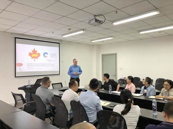 加拿大猪改良中心通过建立完善的评估体系和工具,依靠基因组学和其他新技术保持行业领先优势,实现生猪生产的遗传改良。报告会上,Brian Sullivan指出,猪肉是全球居民最重要的肉类食物之一,中国是全球生猪消费大国。猪的遗传育种对提高生猪生产质量和效率至关重要。通过遗传育种规划,可以提高和改善生猪的多种重要经济性状。规范化的遗传育种,可以猪养殖企业提高母猪繁殖性能,提高仔猪成活率及其生长速度,降低育成猪料肉比。通过基因选育,可以提高猪肉肉质风味,为消费者提供更健康、美味的猪肉。