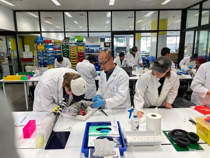杨世勇在澳协助导师指导学生实验操作及样本采集