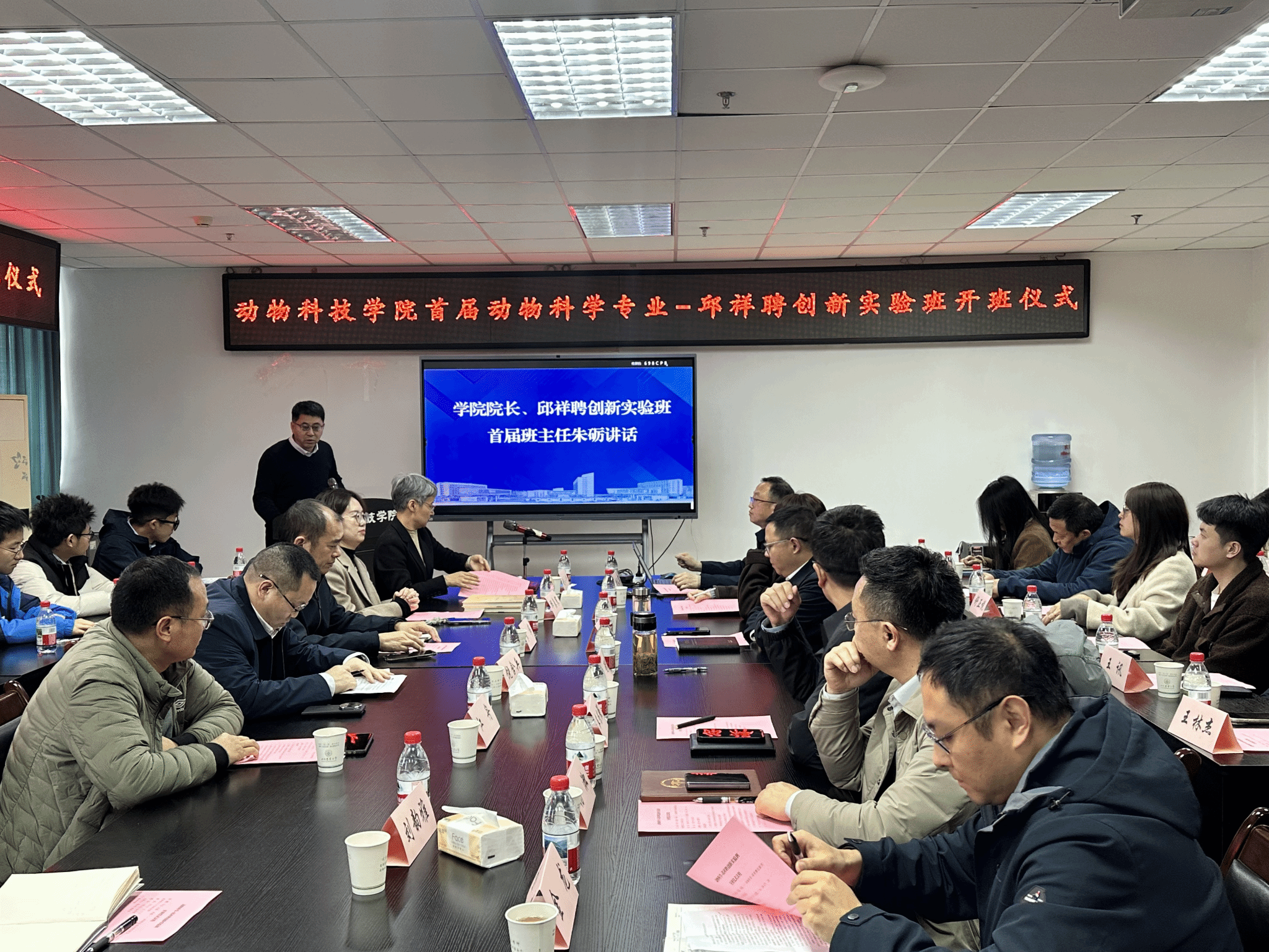 朱砺介绍了实验班的设立背景和建设思路。他指出,实验班旨在深化本科教学改革,聚焦现代畜牧业发展需求,依托学校、学院优势学科与资源,构建创新型本科人才培养体系,为行业高质量发展储备力量。