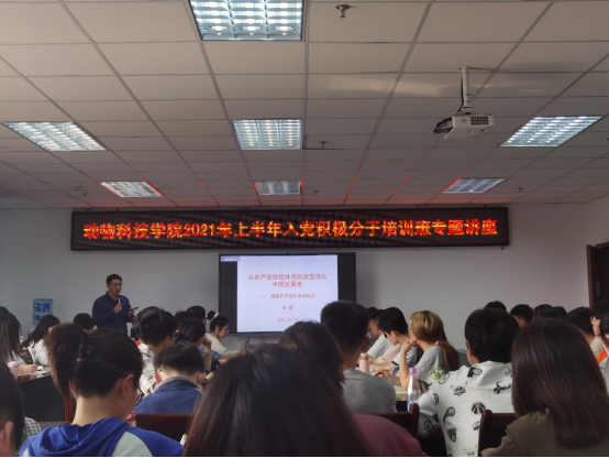 为使入党积极分子从所学专业层面了解党员职责,使学员充分学习了解党员义务,早日以实际行动加入中国共产党。2021年3月27日下午,开云kaiyun登录入口2021年上半年入党积极分子培训班第二次培训课于七教1011会议室顺利召开。党课主题为《畜牧业发展史中的红色基因》、《以实际行动争取早日加入中国共产党》,开云kaiyun登录入口及动物营养研究所共64名入党积极分子按时参加本次专题培训。