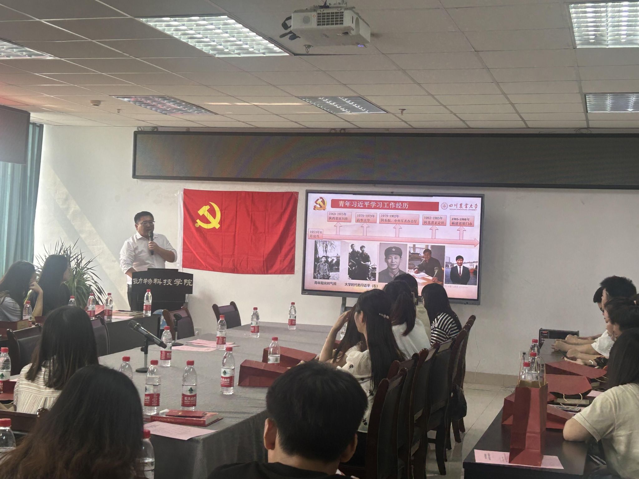 学院党委办公室主任韩庆龙以《做有时代担当的新青年---从<习近平的七年知青岁月>中找寻青春答案》主讲了此次公开课。人无精神不立,国无精神不强。韩庆龙从习近平总书记青年学习工作经历引入,生动解读了习近平总书记在陕北梁家河七年同人民群众同甘共苦、情同手足、血肉相连、鱼水交融的知青岁月。