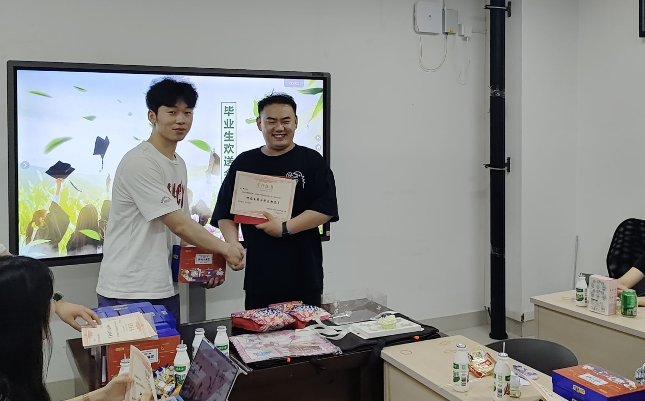 欢声笑语中,游戏环节掀起了又一波高潮,现场气氛热烈。支部向每位毕业生党员赠送了纪念礼品,会议室里洋溢着温馨与喜悦。