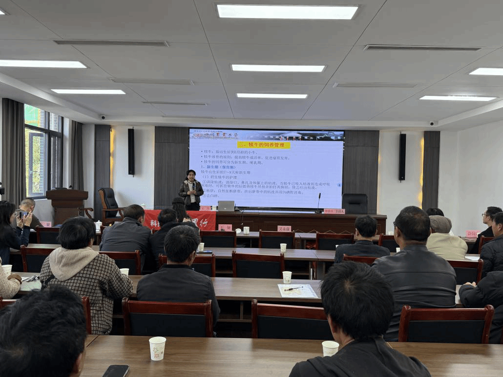 在长宁县肉牛产业协会成立大会上,专家团队同步举办了“肉牛健康养殖与疫病防控”专题培训会。王杰副教授围绕肉牛高效育肥技术,详细讲解了饲料干物质添加量的计算方法、育肥前期后期饲料原料筛选要点,以及实现快速增重的实用措施。王娅副教授则聚焦引种环节,系统介绍了优良肉牛品种筛选标准、运输前后饲养管理技术,并特别提醒养殖户科学选择疫苗,避免因防疫不当造成损失。申洪兵研究员结合当前国际牛价走势,深入解读了养牛补贴政策、安全生产规范等热点问题,现场解答养殖户疑问。培训结束后,专家团队与养殖户展开热烈交流,并发放肉牛舔砖、高效养殖技术手册等实用物资,受到一致好评。
