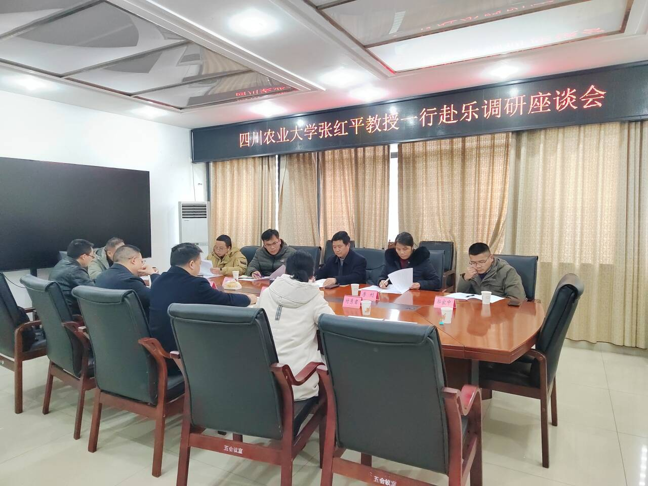 实地调研结束后,乐至县委副书记龙虹主持召开了调研座谈会。会上,县农业农村局总畜牧师付秀君详细介绍了乐至县畜禽产业发展和畜禽种业园相关情况。团队在实地考察的基础上,分别从乐至黑山羊育种基地规划设计、种养循环、基地运营、发展规划和产业链培育等方面提出了意见建议。张红平教授代表团队表示,将为乐至县肉羊育种创新基地建设提供技术支撑,助力打造乐至黑山羊标准化示范场,助推乐至黑山羊产业高质量发展。
