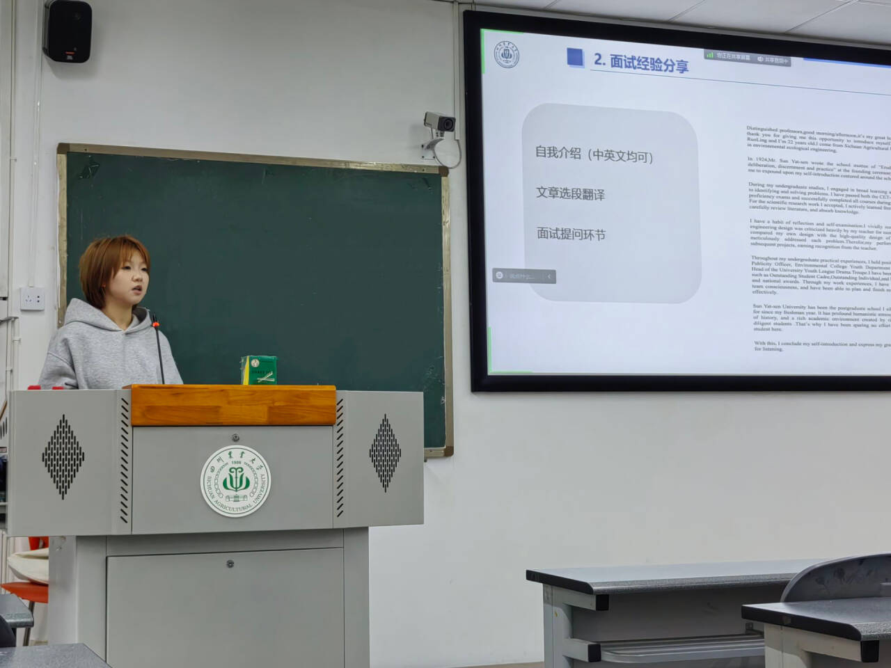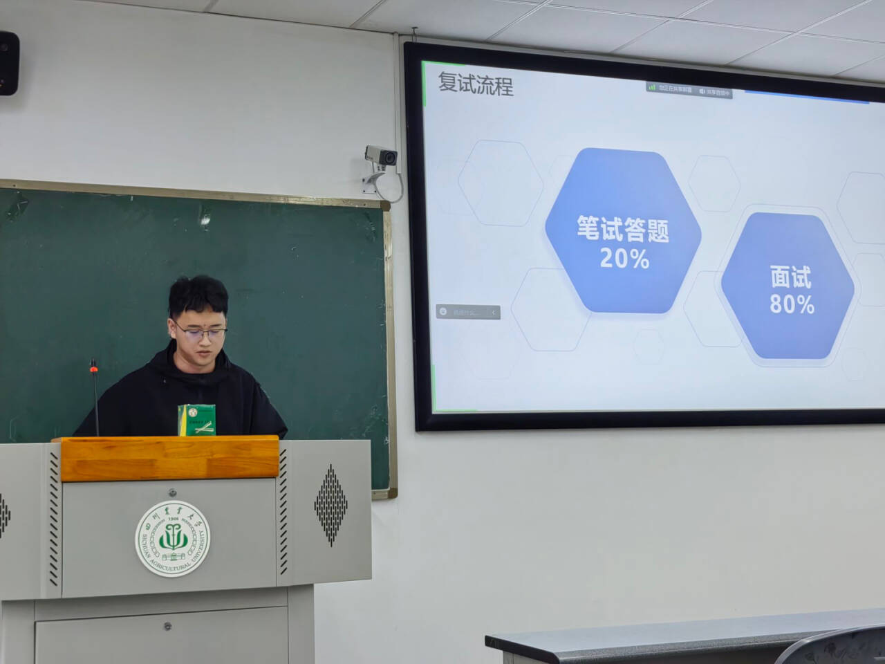本次分享会结束后,动物科学专业2022级3班的江山对此收获颇丰,他说:“我之前也在网络平台上咨询过师兄师姐关于考研复试的问题,但是我认为今天的线下观看更有感觉,更有收获,更能把自己带入到真实的复试现场。”