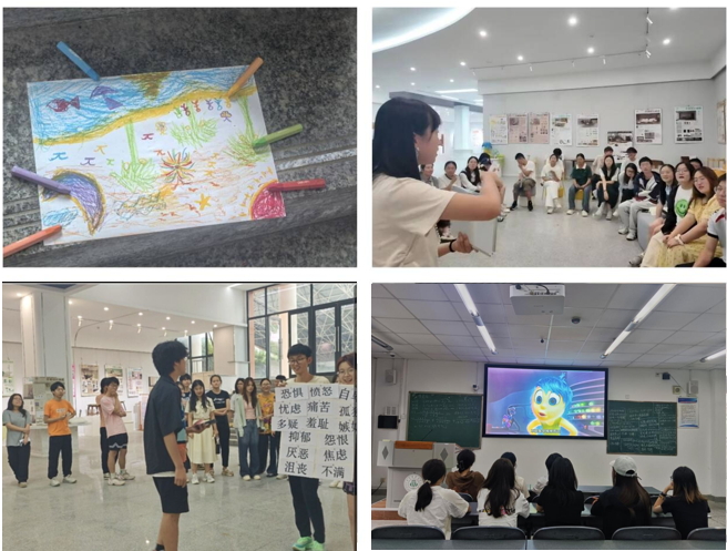 本次心理健康日活动形式多样、内容丰富,共分为“心书启航”心理健康书籍读书分享、“光影疗愈”心理电影放映以及“寻迹心光”小班心理团辅比赛三个精彩子活动。读书分享活动中,同学们自行选取心理学相关书籍,其中童话体心理学著作《蛤蟆先生去看心理医生》广受青睐,有同学在笔记里精心绘制书中儿童自我状态示意图,并配以成长故事,触动人心。经典心理电影《头脑特工队》,影片以生动的动画形式,具象化地呈现了喜怒哀乐的情绪世界,让同学们更好地理解情绪管理的意义。小班心理团辅比赛同样热火朝天,各班级通过绘出想法、交流表达、心理游戏等形式,引导同学们敞开心扉、关照内心,其中动科202401班以情景演绎《头脑特工队》、情绪词卡等互动游戏,不仅增进了班级成员的相互理解与包容,还有效提升了班级凝聚力。这些活动的举办,不仅丰富了校园心理文化活动,更以创新形式助力学生心理健康成长,为构建和谐校园注入了新的活力,受到了同学们的热烈欢迎和积极响应。