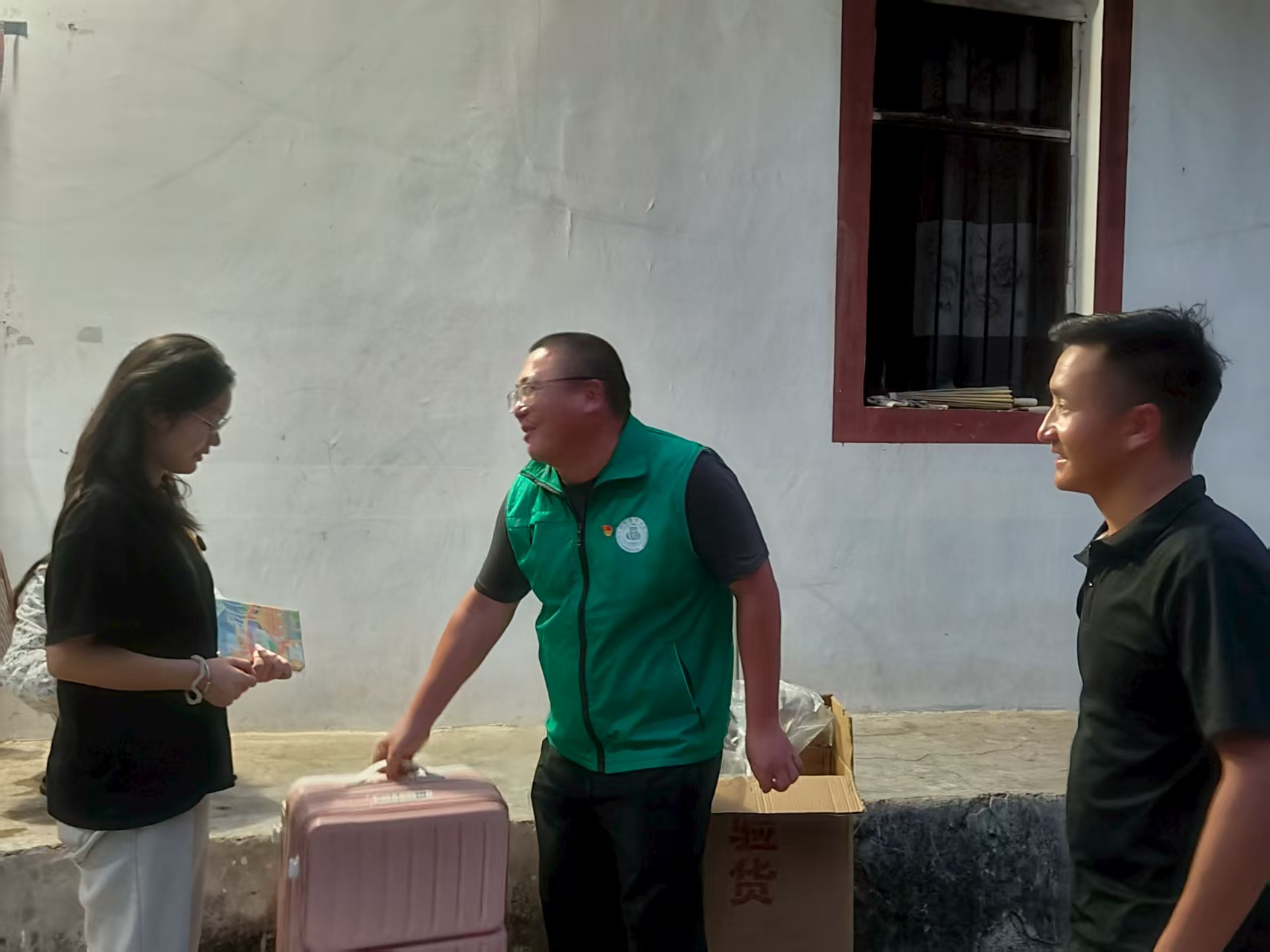 慰问现场充满温情。韩庆龙代表学院送上印有动物科学专业课程表的定制笔记本,村支书丰母体则递上辅导员精心挑选的粉色行李箱。行李箱内,一份详尽的《助学贷款与奖助学金指南》尤为醒目。韩庆龙现场为张霞讲解政策,并郑重承诺:“入学后,学院将为你匹配师兄师姐作为引路人,持续跟踪你的成长,我每学期都会关注你的学习。”这份“惊喜”源于韩庆龙与村干部一周前的精心筹备,旨在让张霞感受到“家”与“校”的双重温暖。
