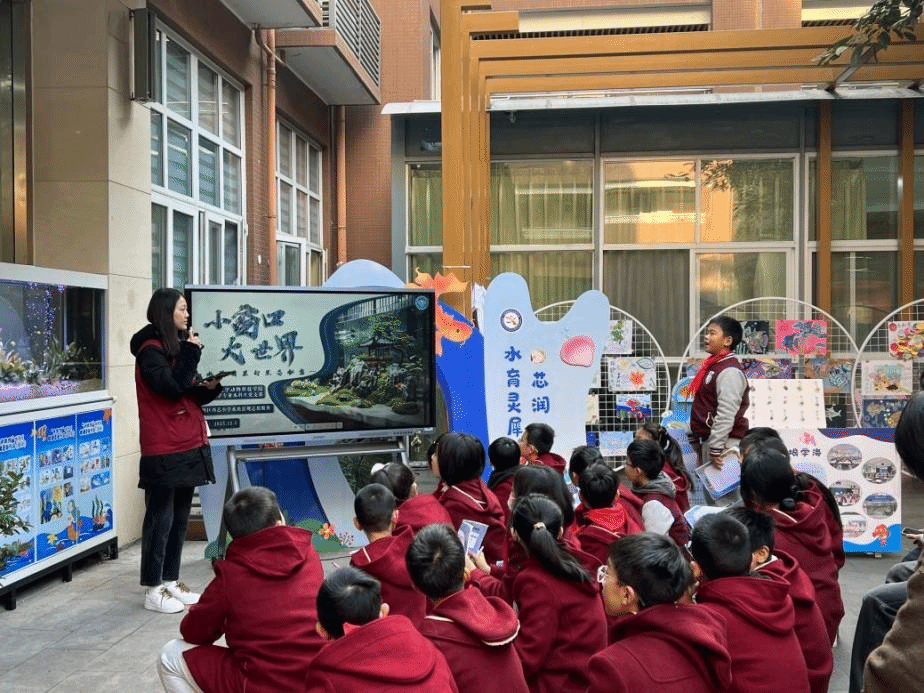 水产养殖学专业本科生党支部的志愿者们,前期经过周密策划、精心备课与模拟试讲,将专业知识转化为贴合小学生认知特点的趣味科普内容。课堂上,志愿者借助多媒体演示、实物教具,为五年级学生讲解了水族造景的基本原理、生态意义及观赏鱼与水草养护知识。从“小鱼如何在水里呼吸”到“怎样打造健康美观的水族箱”,小朋友们踊跃提问、热情互动,与志愿者展开热烈交流,在轻松有趣的氛围中走进了神秘而丰富的水生生态世界。该小学负责人最后对活动给予高度评价,认为高校志愿者进校园活动,既丰富了学校课后服务内容,更是在孩子们心中播下了科学的种子,正是高校发挥专业优势服务基础教育、实现协同育人的有效实践。