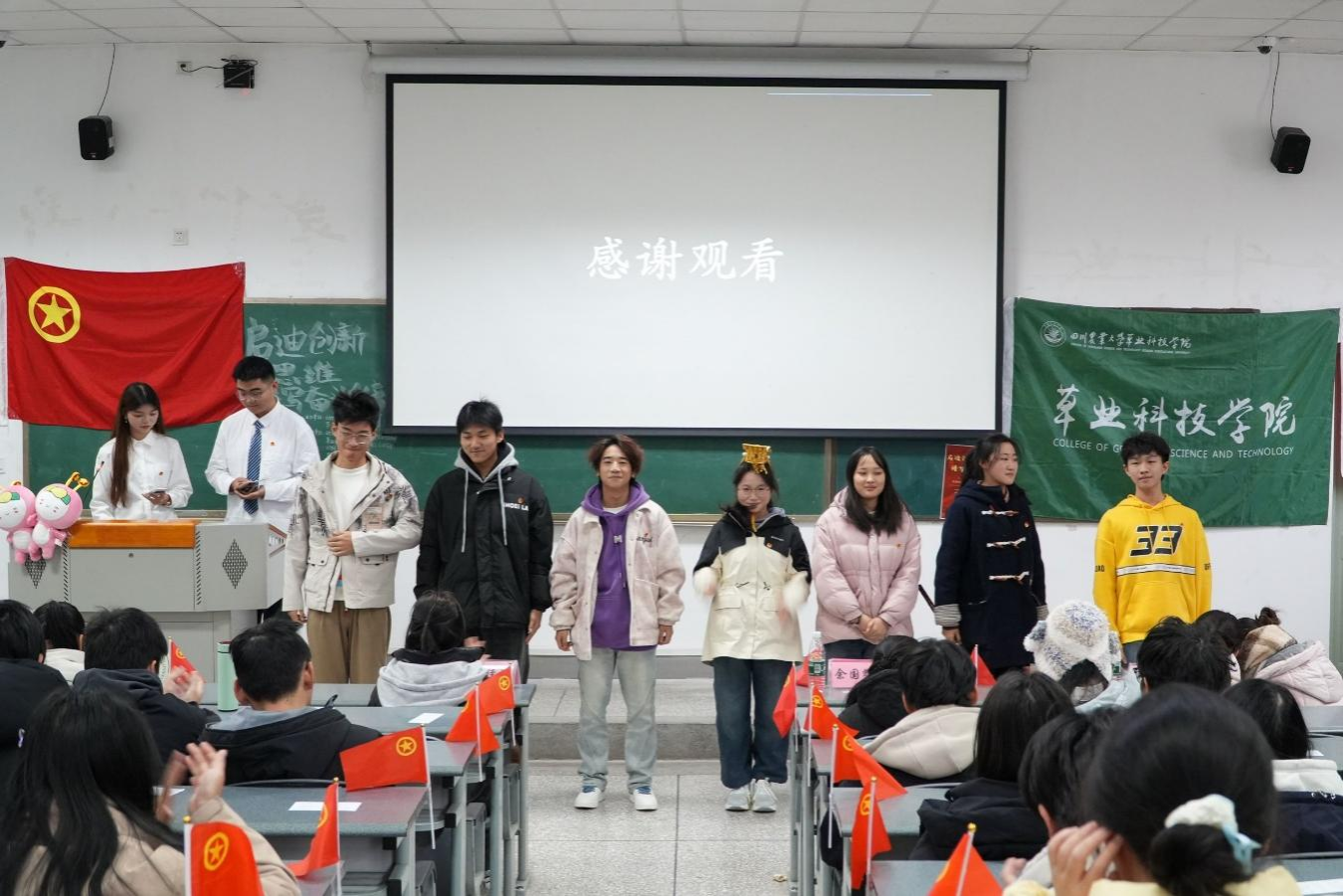 为进一步学习贯彻习近平总书记给中国国际大学生创新大赛参赛学生代表回信的重要思想,动员引领广大团员青年领悟“一二·九”精神,在理论学习和实践体验中弘扬科学精神,积极投身科技创新。开云kaiyun登录入口团委联合草业科技学院团委、动物科学202403班团支部、动物科学202305班团支部、草业科学202403班团支部、草坪科学与工程202302班团支部于12月13日在4A-109开展了“启迪创新思维,谱写奋斗华章”十二月示范性班团活动。本次示范性班团活动分为四个篇章展开,共180余名同学参与。