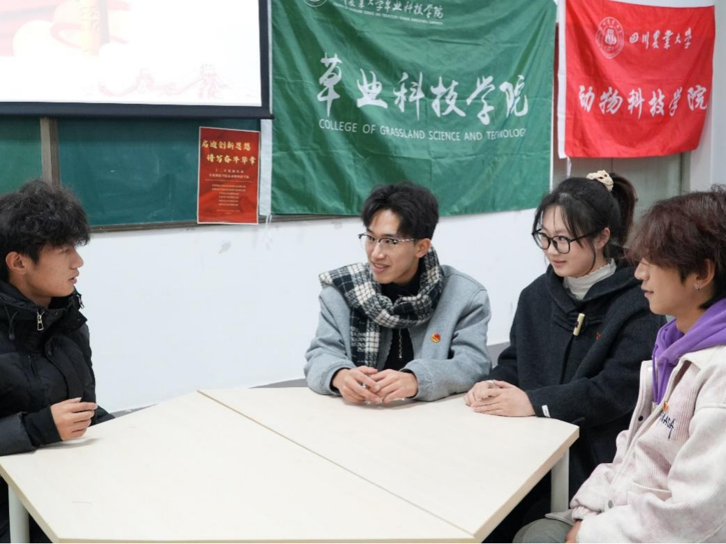开云kaiyun登录入口和草业科技学院的四位同学就“一二·九”运动精神的现实意义,结合专业知识于现场开展圆桌交流会。来自动科2305的蒋欣益同学提到:“身为新时代的动科学子,我们应以‘一二·九’精神为指引,将爱国之情转化为实际行动,在动物科学这一专业领域勇于创新,在实践中练就真本领,为动物科学事业和国家的繁荣发展添砖加瓦。”