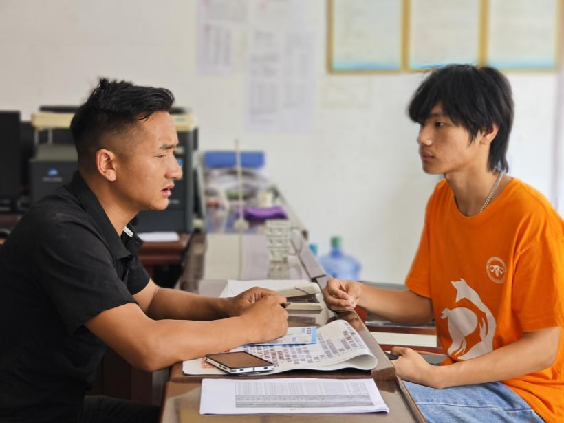 团队队长郭星宇采访石板滩村支部书记丰母体(柴丁鼎供图)