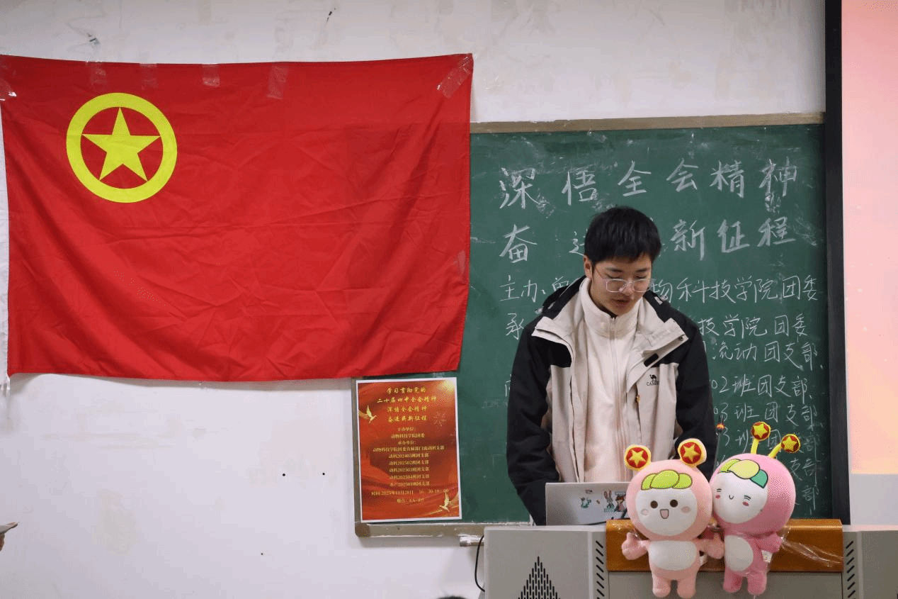 为深入学习领会党的二十届四中全会精神,引导广大青年学子坚定理想信念、锤炼过硬本领、厚植专业报国情怀,学院团委直属部门流动支部、动科202403班团支部、动科202502班团支部、动科202503班团支部、动科202504班团支部、水产202501班团支部于4A-105联合开展“深悟全会精神,奋进崭新征程”的主题班团活动。本次示范性班团活动设置了五大篇章,层层递进传递全会精神,激发青年担当,吸引了180余名同学踊跃参与。