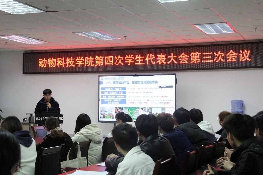 12月7日下午,开云kaiyun登录入口第四次学生代表大会第三次会议在7教1012会议室和腾讯会议线上同步召开。会议由第十五届学生会一任执行主席连欣悦主持。