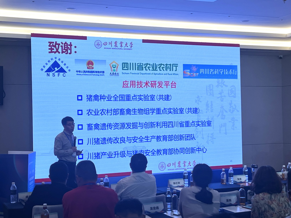 朱庆教授应邀主持了全体大会专题报告,朱砺教授应邀主持了“生猪健康养殖与食品安全”论坛并在川渝地区生猪产业体系技术研讨会上作《种猪遗传改良技术体系》的报告。
